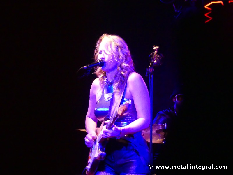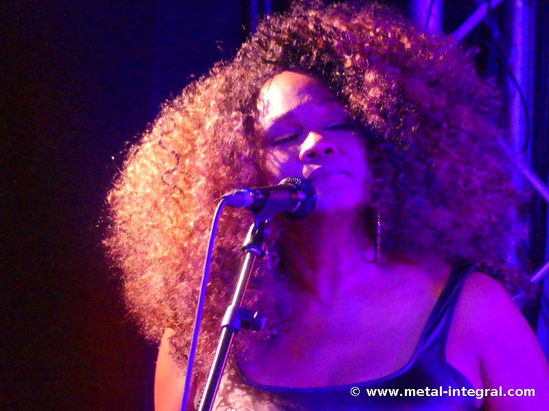 sait parfaitement tenir la scène en faisant participer le public, je ne vois pas le temps passer. Vers la fin du concert, elle se permet même de descendre dans la fosse, pourtant surpeuplée, armée de son seul micro pour communier avec le public, qui n'attendait que ça ! Le concert se termine par un titre plus calme, atmosphérique et bluesy, comme pour apaiser toute l'effervescence accumulée durant le set. Quand je vois l'enthousiasme et le bonheur ressentis dans la salle, je me dis qu'il faut vraiment qu'il y ait encore plus d'évènements comme celui-ci, car ils font du bien au moral !